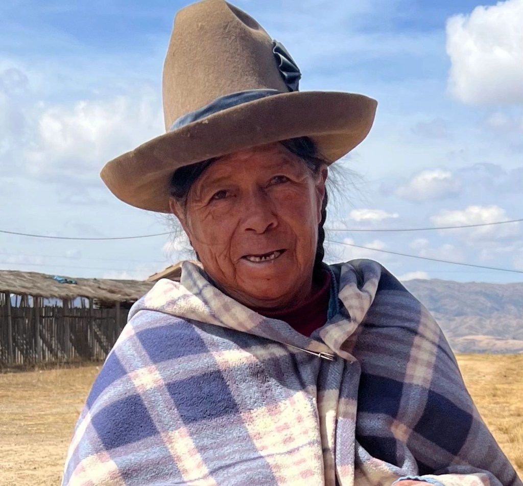 Women still wear traditional dress with different hats according to the community they come from. Everything is carried on their back in a woven blanket called a lliq’lla – be it their child, potatoes, or their handicrafts they are keen to sell us.