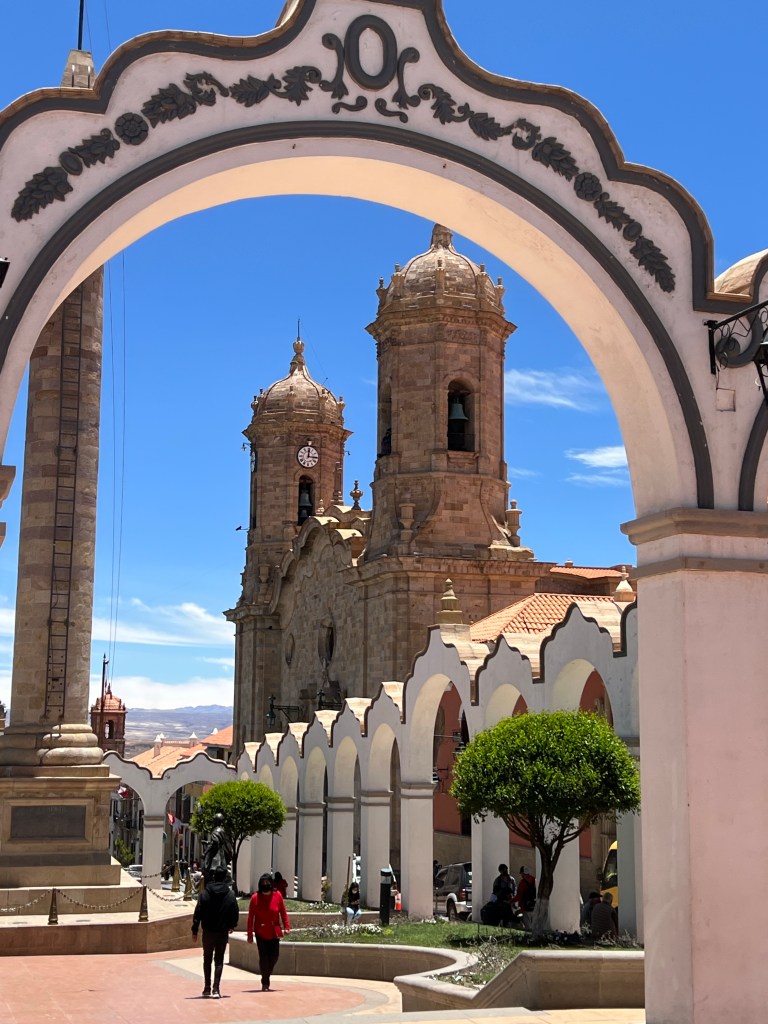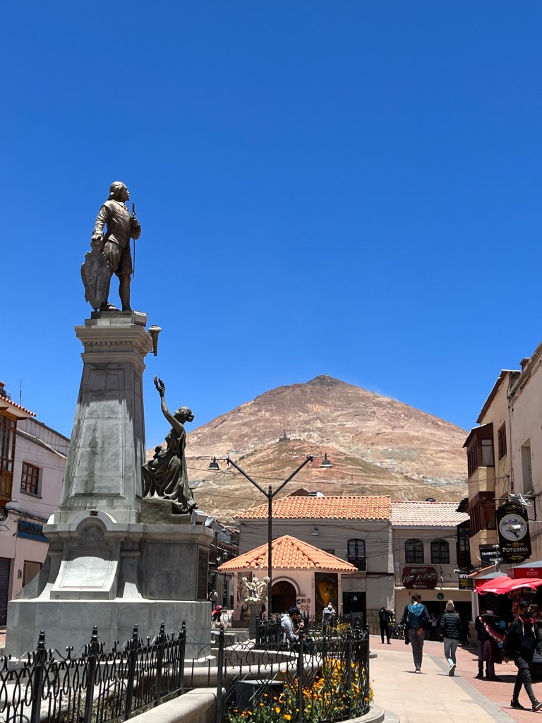 It has been a bit of a travelling day but needless to say no ordinary one. Noel and David arrived early to pick me up and we headed south to Potosi. A stunning drive along a good road without a soul on it, through mountains and lots of native villages. Once again evidence of improvements were seen. Social housing which cost people approx £25 per month; in addition to schools, there seem to be sports centres and often technical colleges in the towns teaching general skills – plumbing, carpentry, electrics etc. There have been major water projects, connecting everyone, providing irrigation systems and building a 100 damns and reservoirs. They are also offering a free conversion of petrol to gas cars. They have built 7,000 telephone masts and in theory everyone has coverage and internet (better than Ramsbury!). Amazing eh! But there is still a long way to go – the poverty in which people are living is unreal, though they all seem to have a mobile phone!