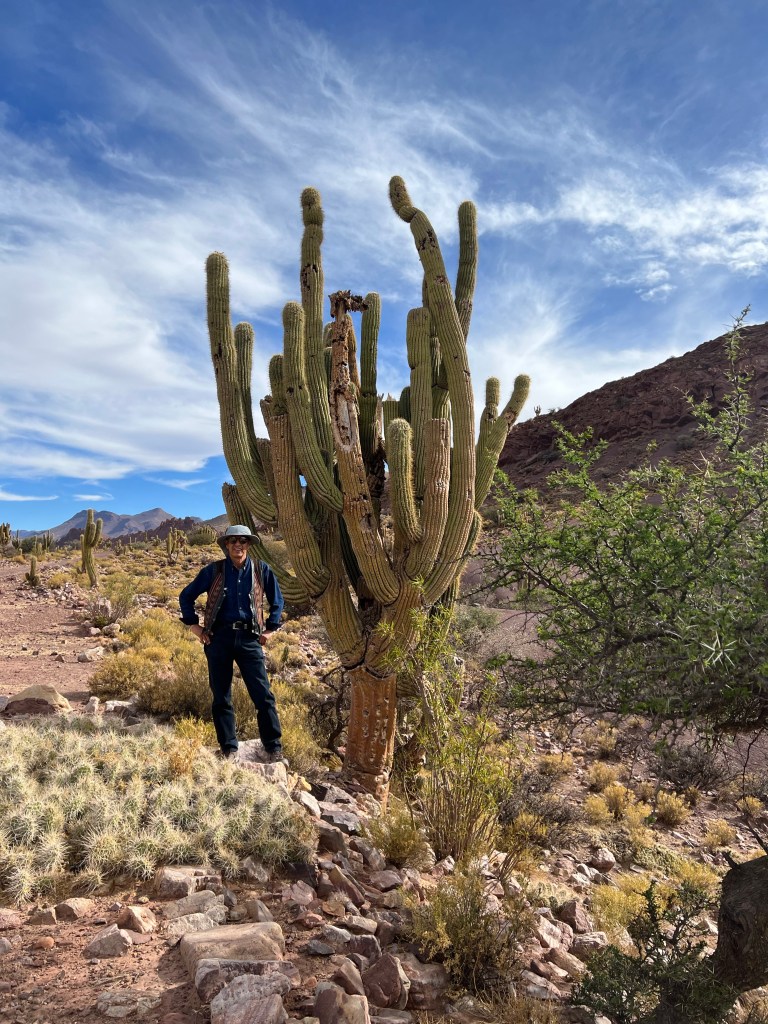 The landscape suddenly softened and turned to sand and had the most incredible cacti of different varieties – Noel knew them all but I am afraid I couldn’t keep up with them. What I did glean was that a cactus only grows a cm a year and there was one which was thought to be about 750 years old, though I have to admit, didn’t look very well.