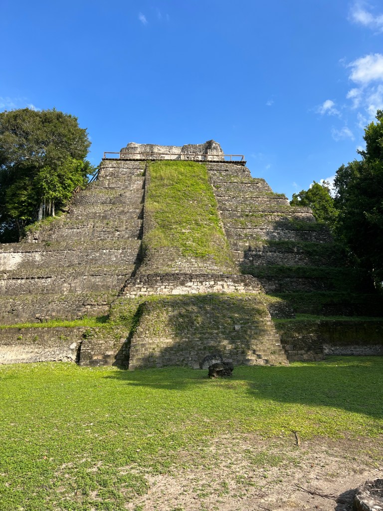 Fito joined us for breakfast and we headed off with Hans our driver on our excursion to our first two archeological sites. These were about an hour away and we had an interesting drive seeing a very different side of Guatemala. We are now in the north east of the country, in the ‘lowlands’ close to the Belize boarder. It is an area of much gentler hills with very white, chalky soil. Farmland is poor in this area so limited to predominantly cattle with just a few vegetables – beans, corn and squash – grown by the families for their own consumption. All other fruit and vegetables have to come from further south in the highlands. The population is much lower here and the villages small and spread-out. Noone wears traditional dress which is sad. Until relatively recently the area of Peten was pretty well isolated from the rest of the country as access is so difficult unless you fly. I remember Mum telling us that she and dad flew on a small plane directly into the site, landing on a very short grass runway. It was not until the 1980s that the first tarmac road was built in Northern Guatemala from Flores to Tikal, again, to bring the tourists. Tourism in this part of the country is still relatively undeveloped.