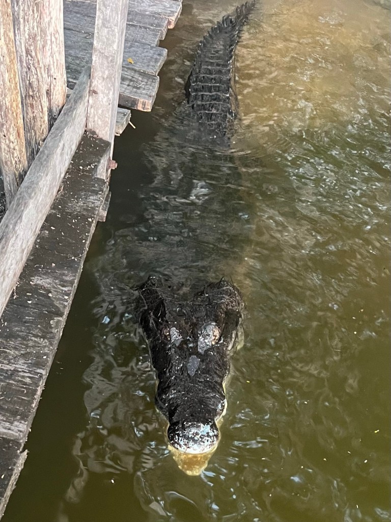 As we came off the boat there was the biggest croc I had ever seen – a moreletii – lying in the water along the jetty… huge and amazing.