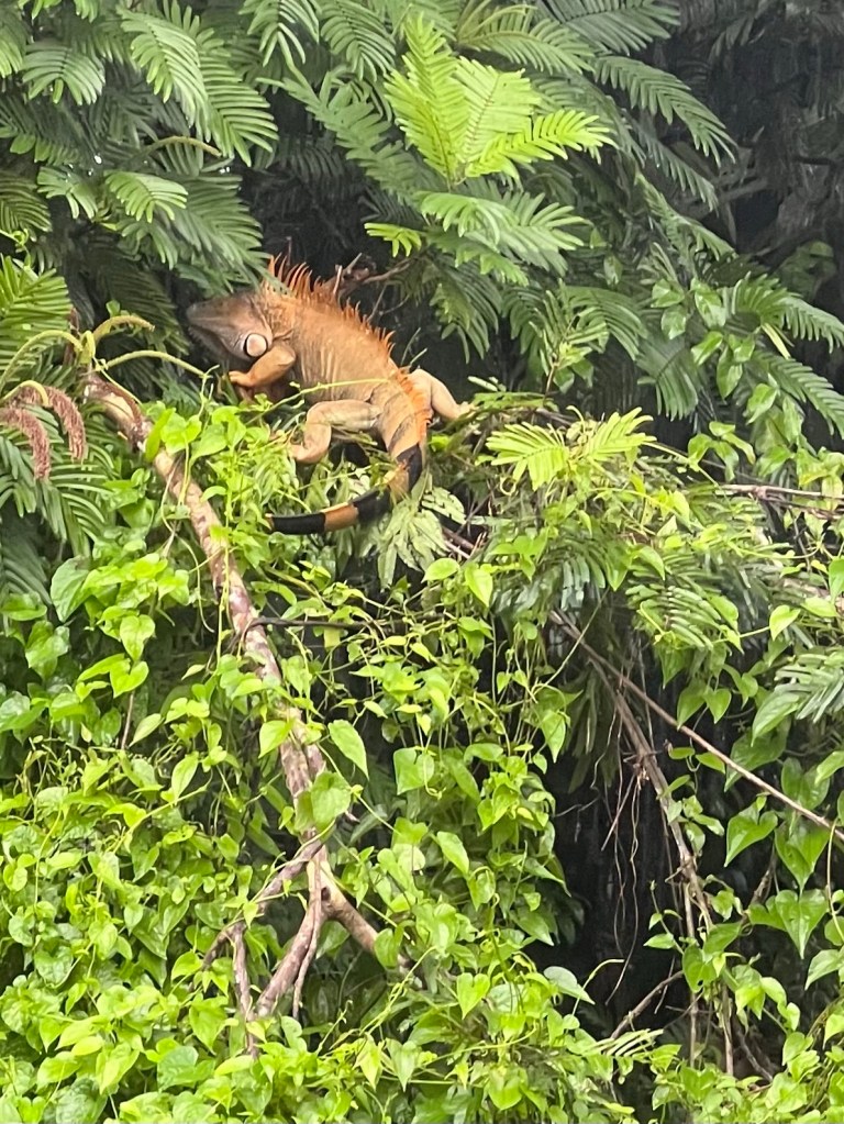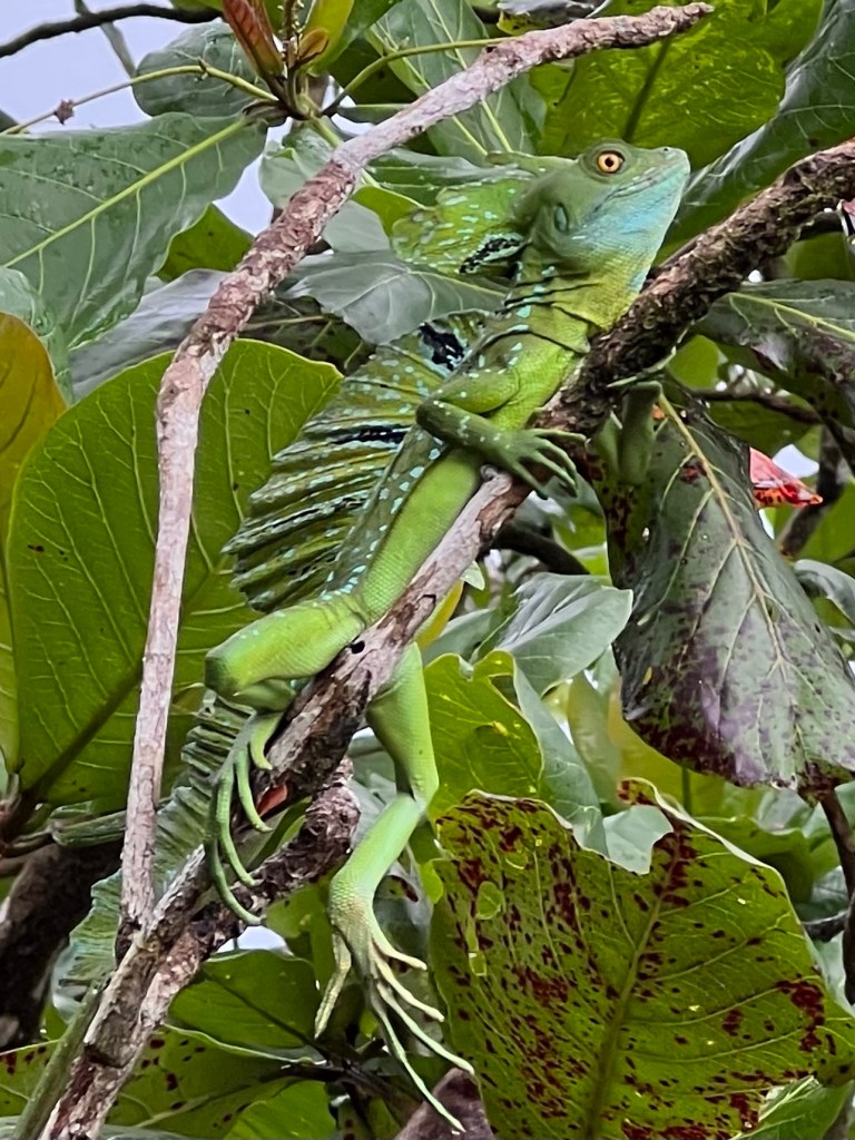 We carried on regardless and were rewarded with an osprey or fish eagle, who had had a good morning and was flying with a considerable sized fish in its claws. It apparently does not kill the fish when it catches it, but flys around with it until it dies. We saw a wonderful male green iguana in the trees, which had turned orange ….. as it was the mating season. And a bright green basilisk lizard draped handsomely along a branch amongst some identically coloured leaves.