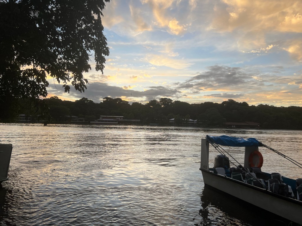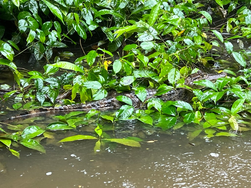 It is incredibly beautiful and we immediately saw two different kinds of toucans: the black-mandibled toucan which is black with a yellow breast, throat and cheeks and funnily enough black lower beak. Soon after, we saw a keel-billed toucan, which is the largest found here with its huge, rainbow-coloured bill – love them! We saw several different king-fishers (Amazon, ringed and green) all happily darting about. The largest, ringed kingfishers, live in holes in the riverbank away from predators.