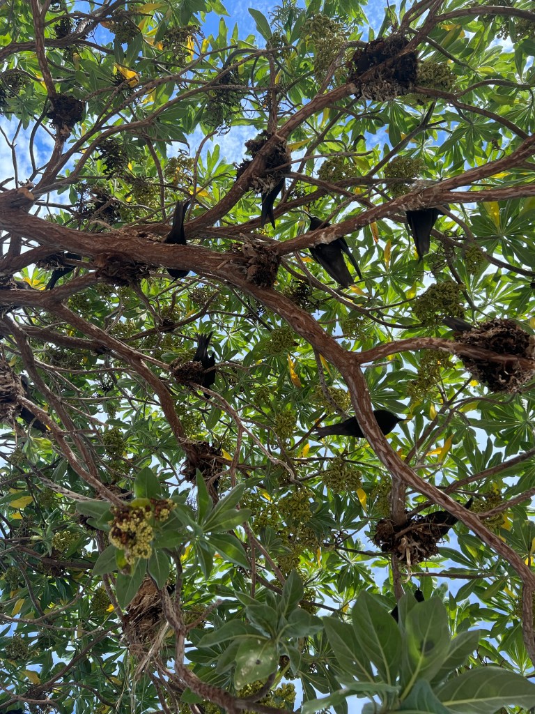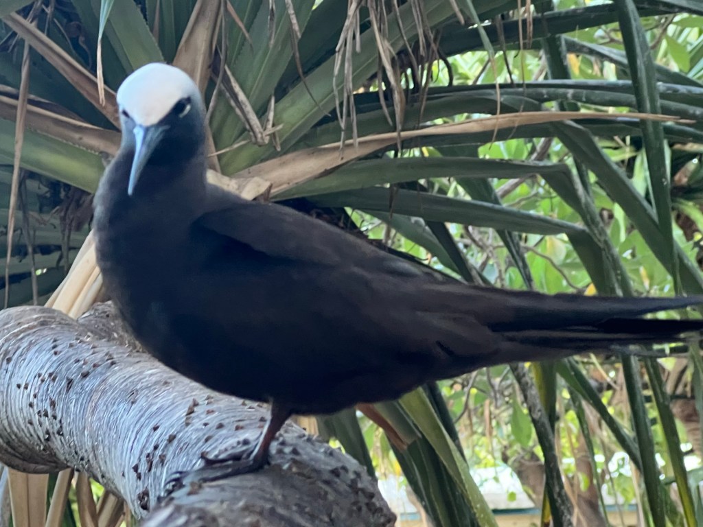 It was a relatively smooth two hour journey and at last we saw a stunning, small island in the middle of the ocean, approaching it passed a wonderful old wreck guarded by masses of different kinds of cormorants, Brown Boobys (so sweet!) and of course herons. We disembarked and were given a detailed briefing of the dos and don’ts of this very special and fragile place and as we entered the resort we were welcomed by the most amazing sound of birds. Looking up, every tree was full of dear little white capped fellows, called Noddys.
