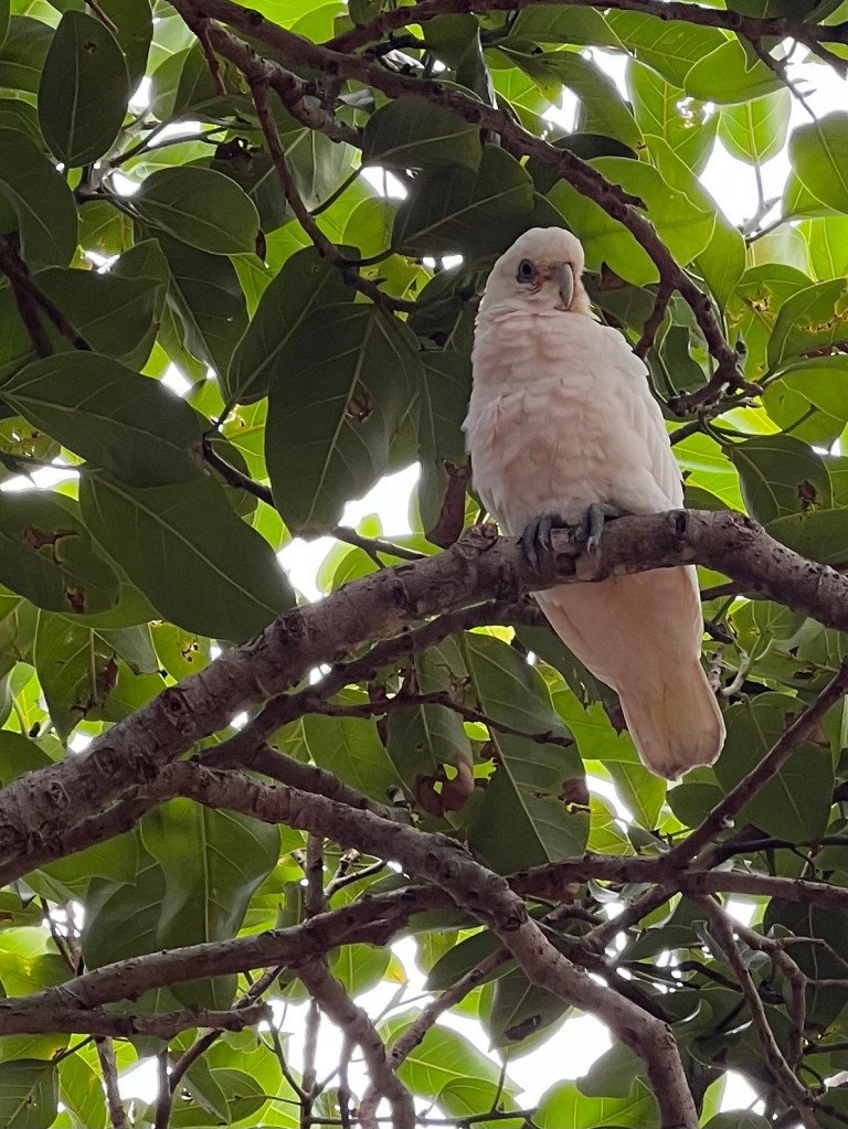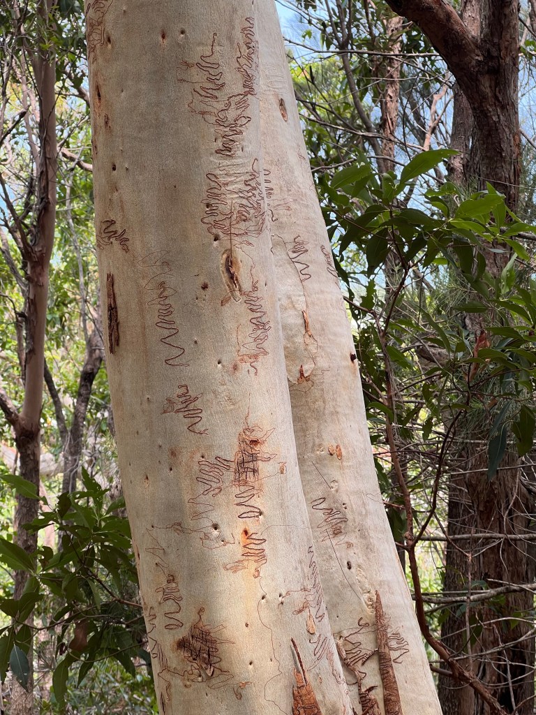Strangely, we did not pass too many others on the way, but I since discovered there is an Aboriginal legend which says couples climbing Coolum together break up due to an ancient Aboriginal curse – possibly not ideal on Valentines Day! We saw some wonderful Scribbly Gum trees and also a rather sweet blue-faced honey-eater at the base and lots of corellas nestling in the trees. The birds, by this time, were getting pretty agitated which made us think the storm was now pretty imminent.