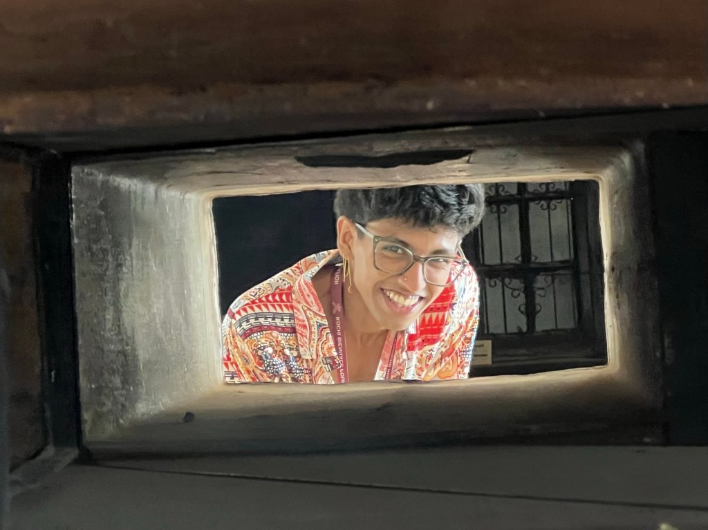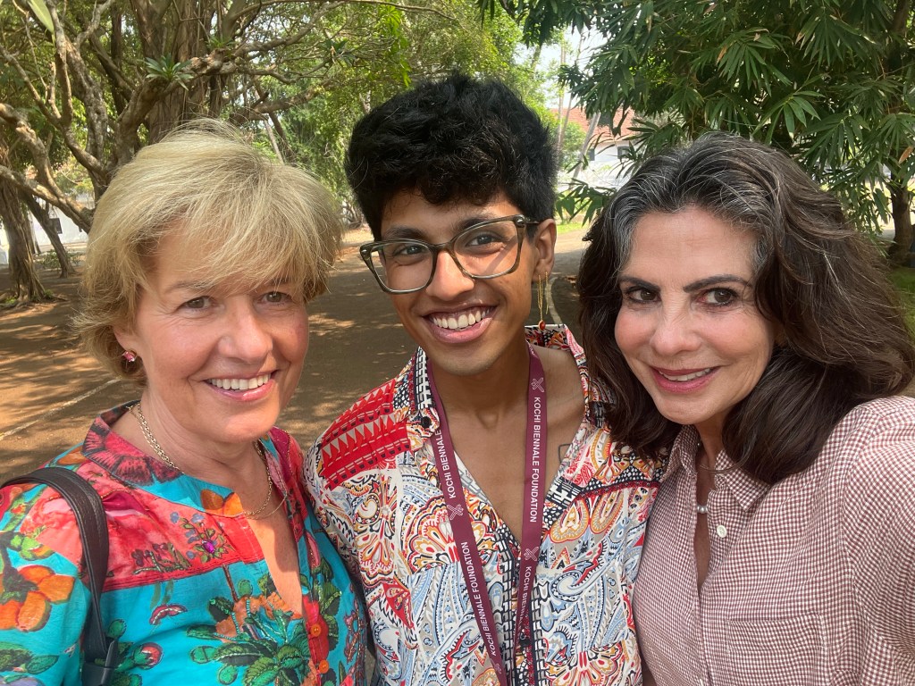 We had just the most amazing morning at the Kochi Muziris Biennale a huge contemporary art exhibition taking place across Kochi and indeed in several other cities around the world, at different times of the year. Mariam kindly arranged for us to be guided round the exhibition by the most amazing young guy called Siddharth. Before we started, Mariam’s connections also meant that we were welcomed by the President of the Show, Bose Krishnamachari, which was a huge honour.