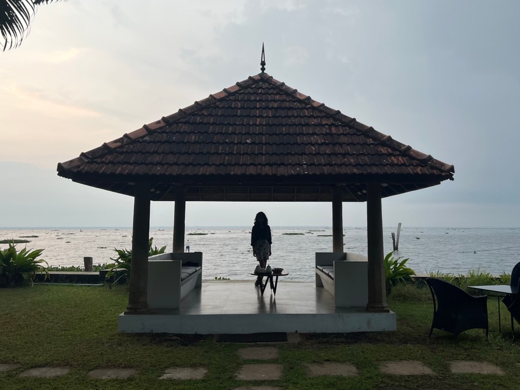 It was lovely to reach Malabar Purity, a very tranquil place set in a lovely rural setting, overlooking Lake Vambanad. It is very pretty and airy with lots of turquoise which made me smile, from the start. Full of some pretty crazy contemporary art alongside an eclectic collection of antique sculptures and furniture, it has the nicest feel about it. Analida and I have lovely big rooms on the waters edge with our own balconies and think we will be very happy here. I fear I am going to be a little green when I leave her here in a couple of days. Having extended her trip (after day two!), Analida is on a lovely weeks massage programme, though is yet to discover what this involves.