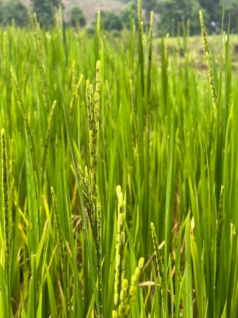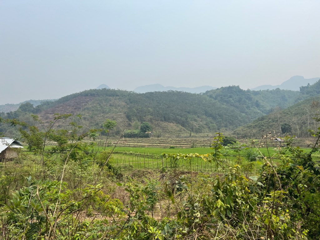 Life in this village was very simple with no running water, some electricity though, needless to say some satellite dishes! Up until a couple of years ago there had been no road into the village but this was built after COVID – I use the word, road, loosely! The villagers are pretty self sufficient, with families having small pieces of land, many, many chickens, a few cows and quite a lot of pigs, most with the most adorable piglets. They grow rice, bananas and tobacco and some have small vegetable patches. Bamboo is a staple product, used extensively in their building and also something they can sell. Any other surplus would also be taken to the local market – several hours away. Pang explained they would have no banking so if they make any money they would buy a cow ($250) or pig ($100), fatten it up and sell.
