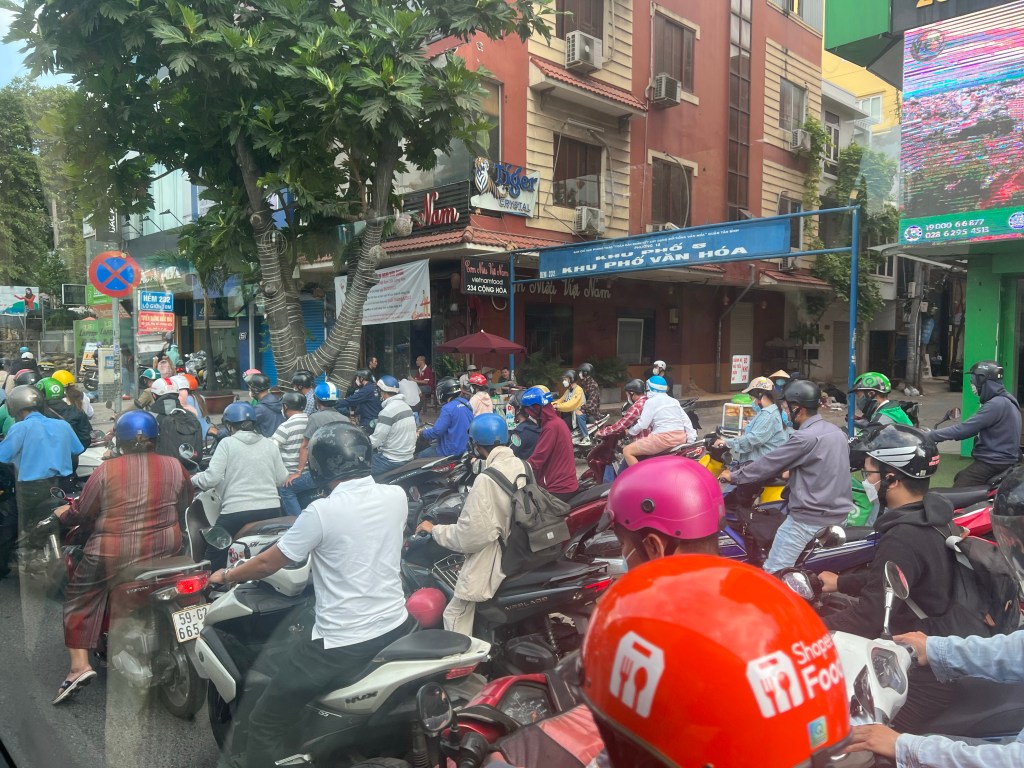 Thirty five minutes later we were in Ho Chi Minh. Unfortunately so were many, many others and it took forever to get through immigration, but despite the strict 15 day limit, no questions were asked! I was met by a rather grumpy driver and driven through crazy, crazy Ho Chi Minh to the Acnos Grand Hotel. You hear about the motorbikes in Vietnam – but you cannot imagine what they are like – it made Mumbai look like Ramsbury high street. They are about six deep, going in every direction, quite often on the wrong side of the road, and if they can’t do that, they simply go, en masse, along the pavement! Crossing the road is quite a thing, the first time I attempted it, some kind Vietnamese lady came and took my arm!