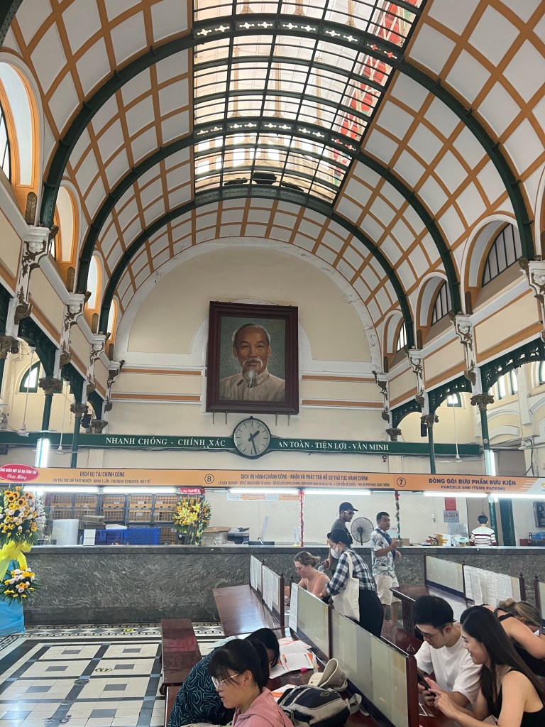 We also had a look at the Saigon Central Post Office which was built by the French a few years later, just next door to the cathedral. It is still a working post-office, and would no doubt have been where we would have rushed to get our letters from home in days gone by. Sadly this is now a thing of the past, but it was nice to see lots of young sitting at desks, writing postcards under the watchful eye of Ho Chi Minh on the far wall. Ha told of us an amazing employee, Dương Văn Ngộ (aged 93) who only retired two years ago after 70 years. He was the last public letter writer who translated and wrote thousands of letters for people over the last thirty years. The post office now only uses three counters and the rest has sadly been turned into a mass of tacky souvenir shops.