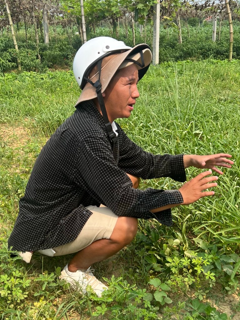 We then crossed a wonderful steel bridge, over the Thu Bon river, to the neighbouring island of Cam Kim. The connecting bridge, only for bikes and motorbikes, was built in 2016, before which the only way to the mainland was by boat. A second bridge for cars was built in 2021.As you reach the other side, you are transported into a calm, rural scene of rice paddies and other crops: corn, melon, chillis, sweet potatoes, gourds and peanuts.