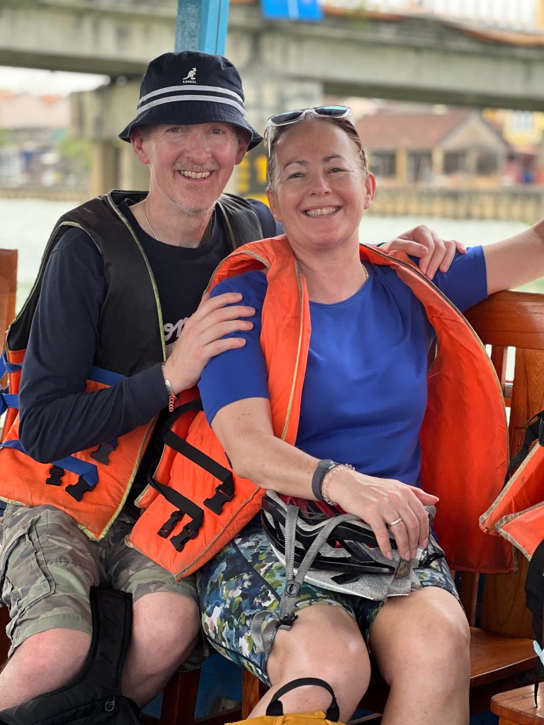 We headed off, a little wobbly, into the busy streets of Hoi An doing our best to stay on the right side of the the road and before long we were in the much more peaceful back streets of Hoi An, passing people’s pretty but humble homes fronted by the most amazing selection of different tropical flowers which seem to grow so happily here.