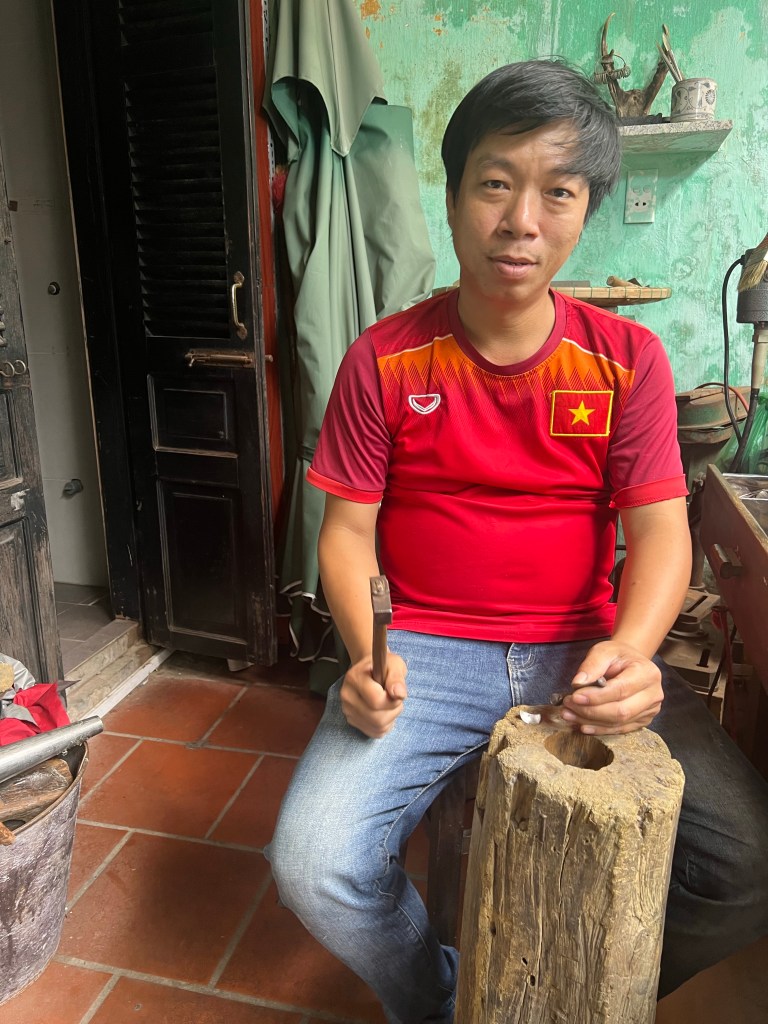 found another back ally where there was a lovely shop selling the most beautiful things made by disabled people, or differently abled, as they quite rightly called them. The craftsmen were all working in a tiny area at the back of the shop, sitting at/on workbenches. One making ceramics, one weaving and my friend Tam who was making jewellery. Tam was deaf and mute, which meant he never went to school. The project scooped him up and taught him to be a silver smith and to sign, read and write. Sweet Ni, who ran the shop, had dwarfism and was the most outstanding saleswoman, She had taught herself to sign and also the others in the workshop, so they could communicate with Tam. She told me that Tam had been so successful in his work, he had been able to afford to build his own house. Great story and some really lovely things. http://www.reachingoutvietnam.com
