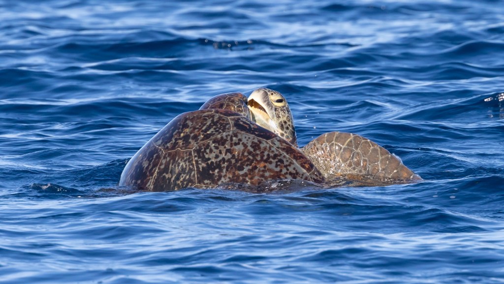 It was a hot, hot afternoon on deck 6 as we continued on our journey, arriving just off Assumption Island (30 miles south of Aldabra atoll) on schedule, just before 4. At 4pm, on the dot, a plane carrying the Seychellois officials, flew in from Mahé, and were collected by the zodiacs to come on board and complete all the immigration and clearance papers. We were then on our way to the legendary Aldabra atoll. Just as we sailed off a pair of green turtles were spotted mating on the surface of the water, together with a number of sizeable flying fish and, as the sun was setting, we also had a glimpse of a whale – amazing!