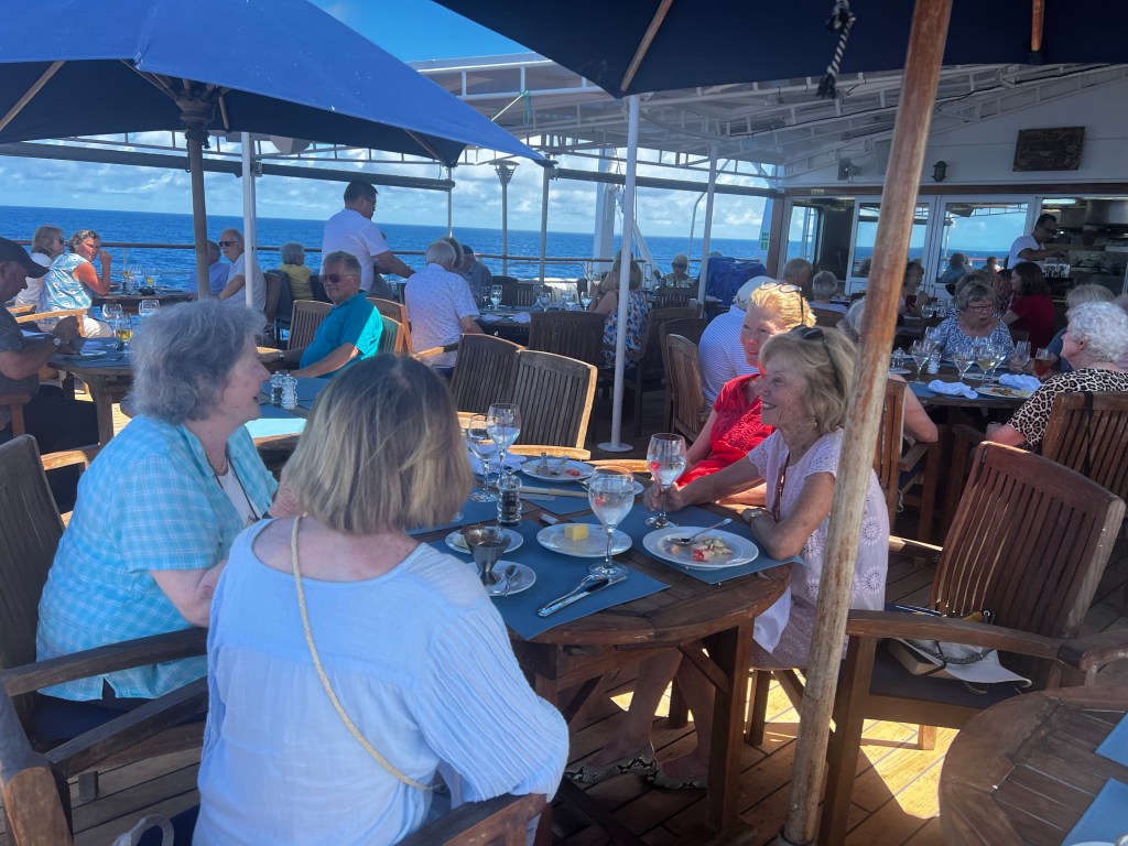 After another delicious supper, some of us went to deck six for a bit of star-gazing, with several of the team talking us through their favourite constellation – I am not sure it was their specialist subject, but they did a great job and the clear, unpolluted sky was magnificent.