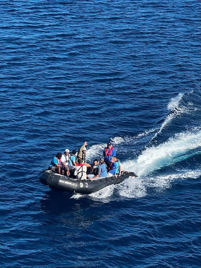 Another lie in this morning, though we had in fact, moved time zones and lost an hour! During breakfast, a pod of spinner dolphins joined us on the bow of he boat and accompanied us for a while, before we headed back to school, this time with Tom telling us all about the wonderful seabirds we are seeing as we travel across the Indian Ocean and the vital part they play in the health of the marine ecosystem.
